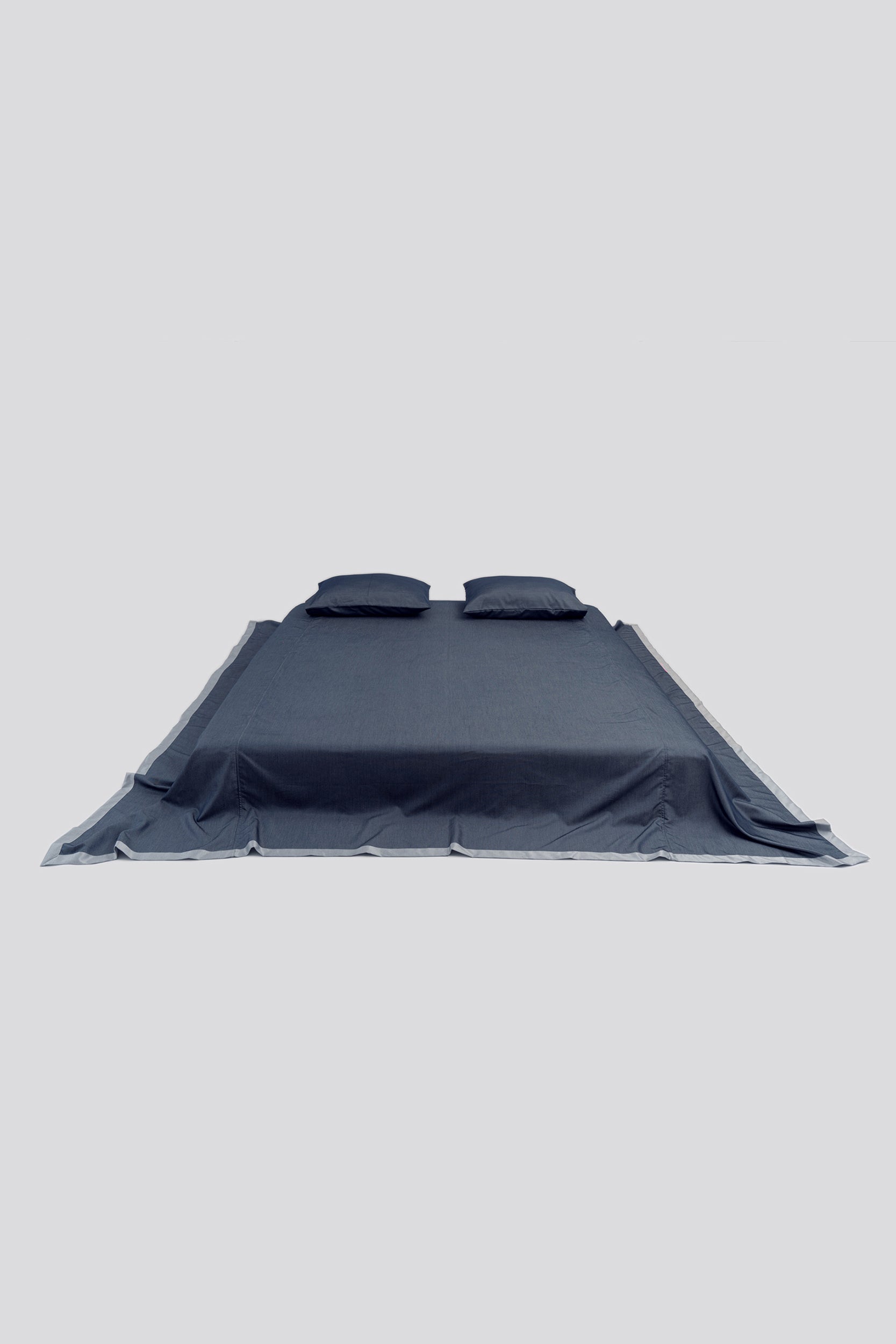 Understated yet striking, the Franca Bed Dress is designed to quietly command and anchor the bedroom through scale, tone and texture. Crafted from a wool/silk blend, it holds contradiction beautifully. One side presents a denim-like appearance, the other is a fluid metallic. It is fully reversible, with each side offering a different mood, shifting in tone and aesthetic. The fabric feels as it looks - substantial yet yielding, weighted but light on the skin. There’s comfort in its structure, a kind of tactile assurance.